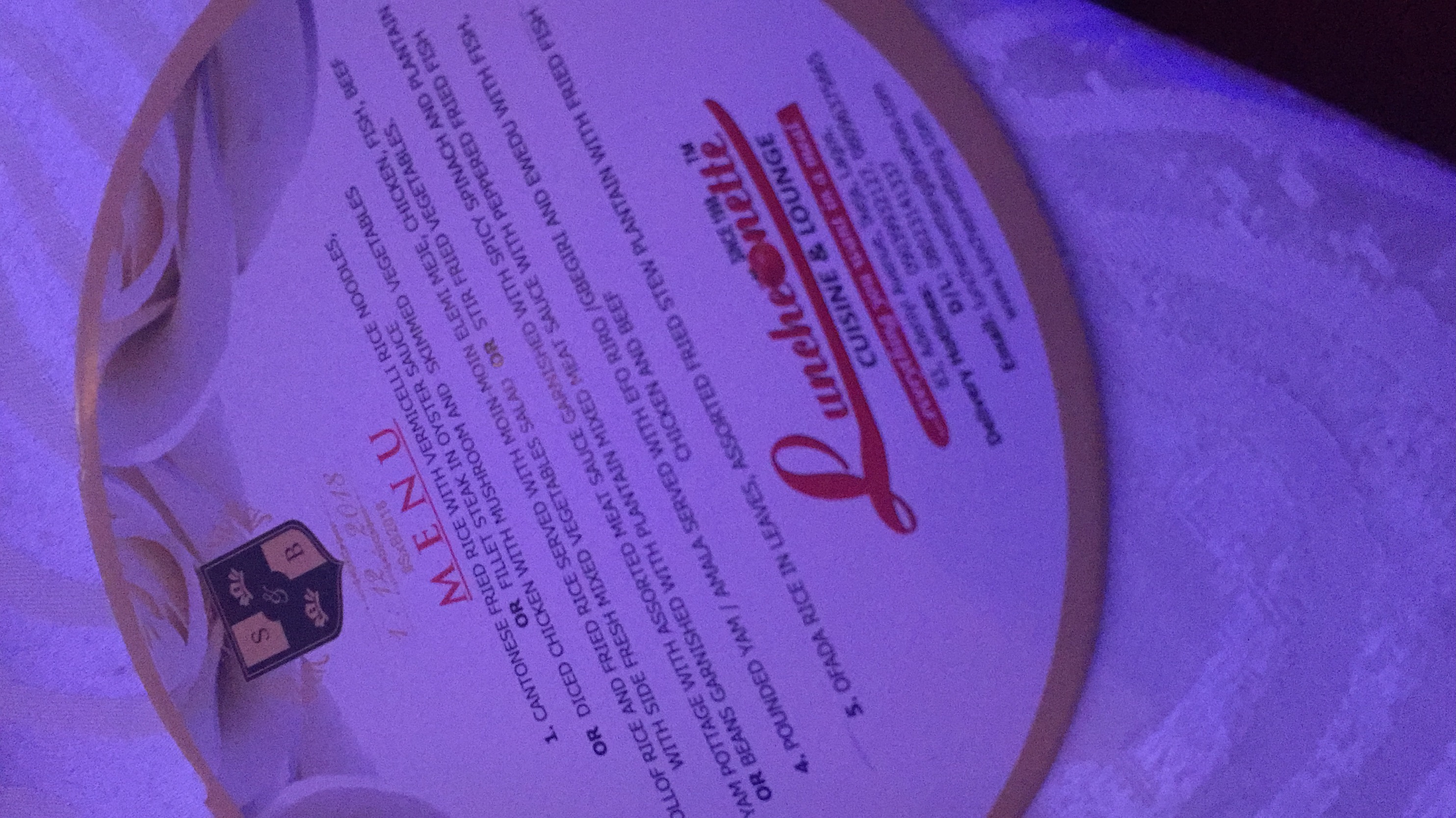 Honestly, the venue was the most beautiful tent like thing I’ve seen. It was simply breathtaking. Following the ushers, we got situated on a table extremely far from my mother. Although the table was occupied by two couples I was still down to party. This reception seh! I must parrttaayyy!! As soon as we were seated, a waiter came to get our orders. As much as I wanted to eat the pounded yam, I opted for rice so that they will not think I am a foodie. I can show my true FFO status later.